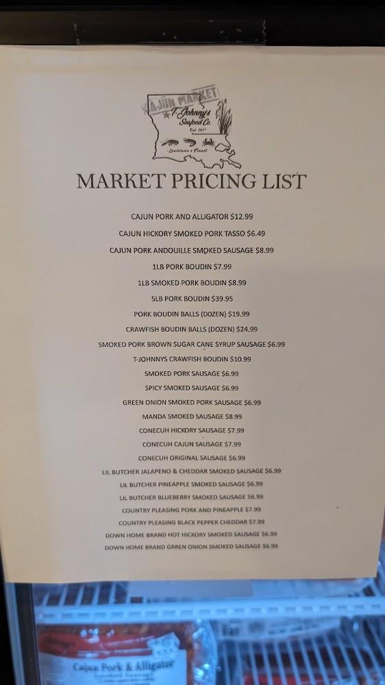 The menu at T-Johnny's Seafood and Cajun Market showcases a variety of Cajun and seafood dishes. Highlights include fried shrimp, crab leg dinners, and flavorful gumbos. Each dish reflects the region's culinary heritage.