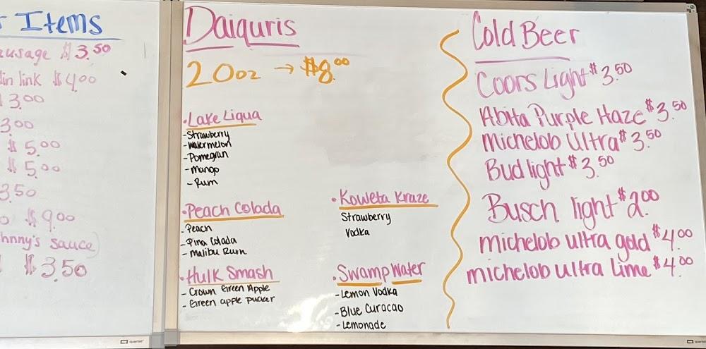 Options like boudin and andouille sausage also draw attention, offering something for everyone. Many dishes come in small portions, perfect for sharing. Daquiris are available, enhancing the dining experience with refreshing flavors.